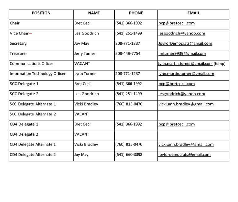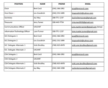 Current Officers of the Curry County Democrats Executive Committee